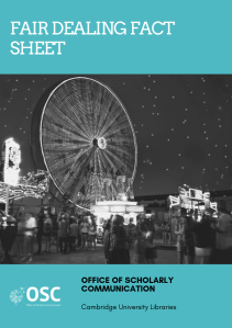 So far there are eight guides in the series covering topics from data management plans to peer review. The guides are often created in direct response to a need identified by our library community – something that often happens when someone starts a sentence with the phrase “I wish I knew more about…” Some guides are created to tie in with an event such as Open Access Week or the recent Fair Use Week. One topic which is particularly suited to this format is copyright and there are currently three guides where it features heavily: Academic Social Networks, Anatomy of a Creative Commons License and the Fair Dealing Fact Sheet. This last title covers a topic that often causes confusion for both researchers and librarians and has been particularly useful to produce in our recent information sessions on copyright Based on the positive reaction I have received both in person and online I think more copyright related titles will definitely be added to the series!