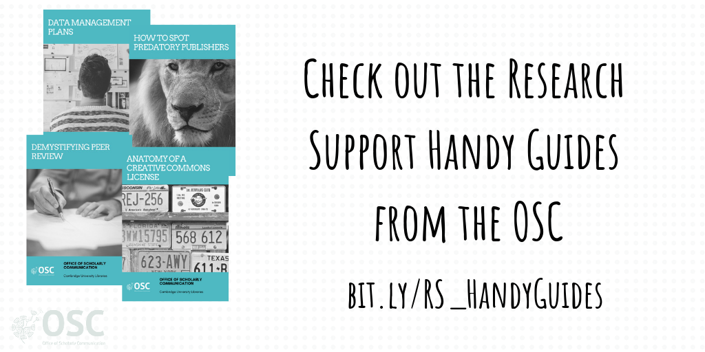 If there is one thing I’ve learnt over the last few years of training library staff it’s that they really love a handout! Whether it contains extra information or a copy of the slides, in print or as a digital document, they really want something tangible to take away from a training session and refer back to. However I’m also a realist and I know that many of these handouts end their lives in a desk drawer never to be seen again so I wanted to create something that would be both attention grabbing and useful. Our series of Research Support Handy Guides were born as a result.